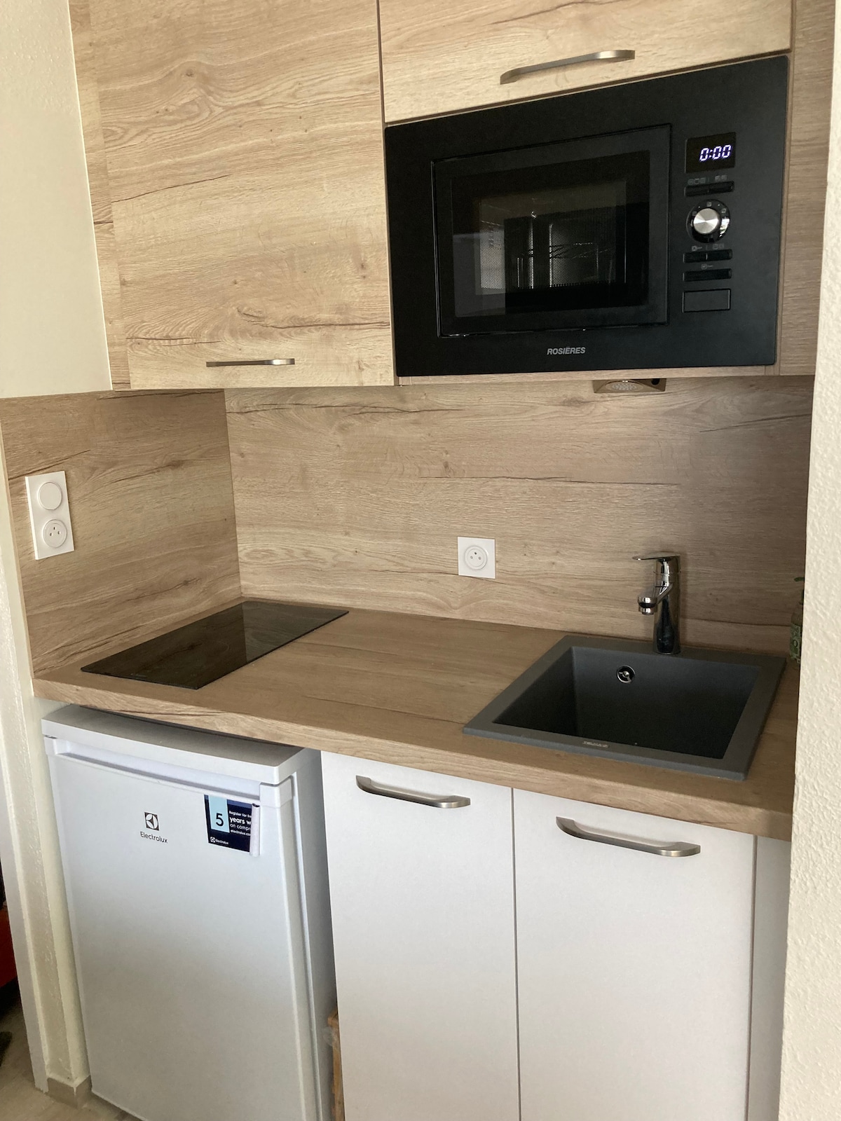 Studio de 20m2 se trouvant au rez de chaussée, dans Résidence neuve, (étudiante et vacancière) idéalement situé dans le quartier touristique des Minimes à La Rochelle. A proximité, la plage des Minimes se trouve à 13min à pieds, ainsi que le port et le bus de mer par lequel vous pouvez rejoindre le centre ville par la mer. Commerces divers également à proximité (Carrefour Market à 20min à pieds, boulangerie, pâtisserie, brasserie, glaciers sur le port ...)
