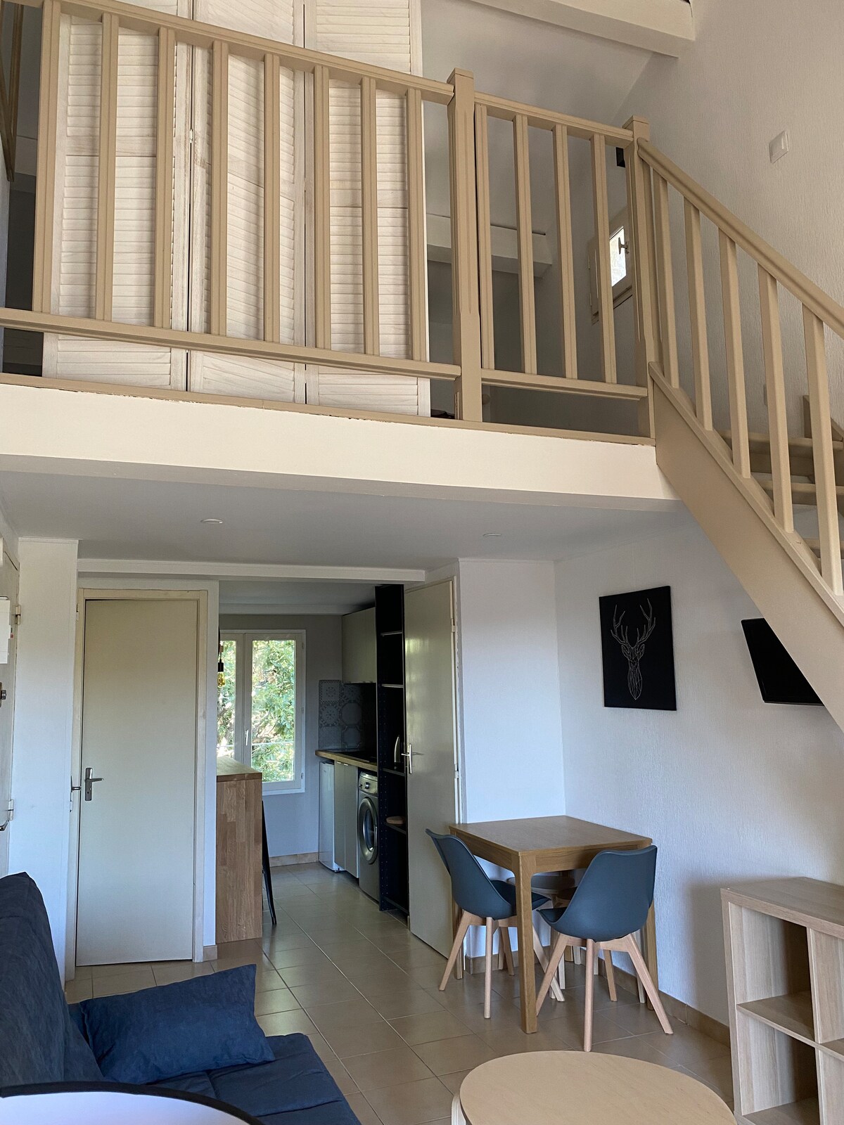 Studio de 27m2 au 1er étage refait à neuf ,climatisé, à 10mn du grand Canyon des gorges du verdon. Situé a 500m du Lac de Sainte-Croix et a 300m du centre du village des Salles-sur-Verdon et des restaurants. Chambre en mezzanine avec lit 160. Cuisine équipée avec plaque induction,four micro-onde,cafetière, lave-linge. Séjour avec canapé convertible (clip-clac). Balcon avec vue dégagée pour prendre son petit déjeuner Draps et serviettes de toilettes disponibles sur demande (avec supplément)
