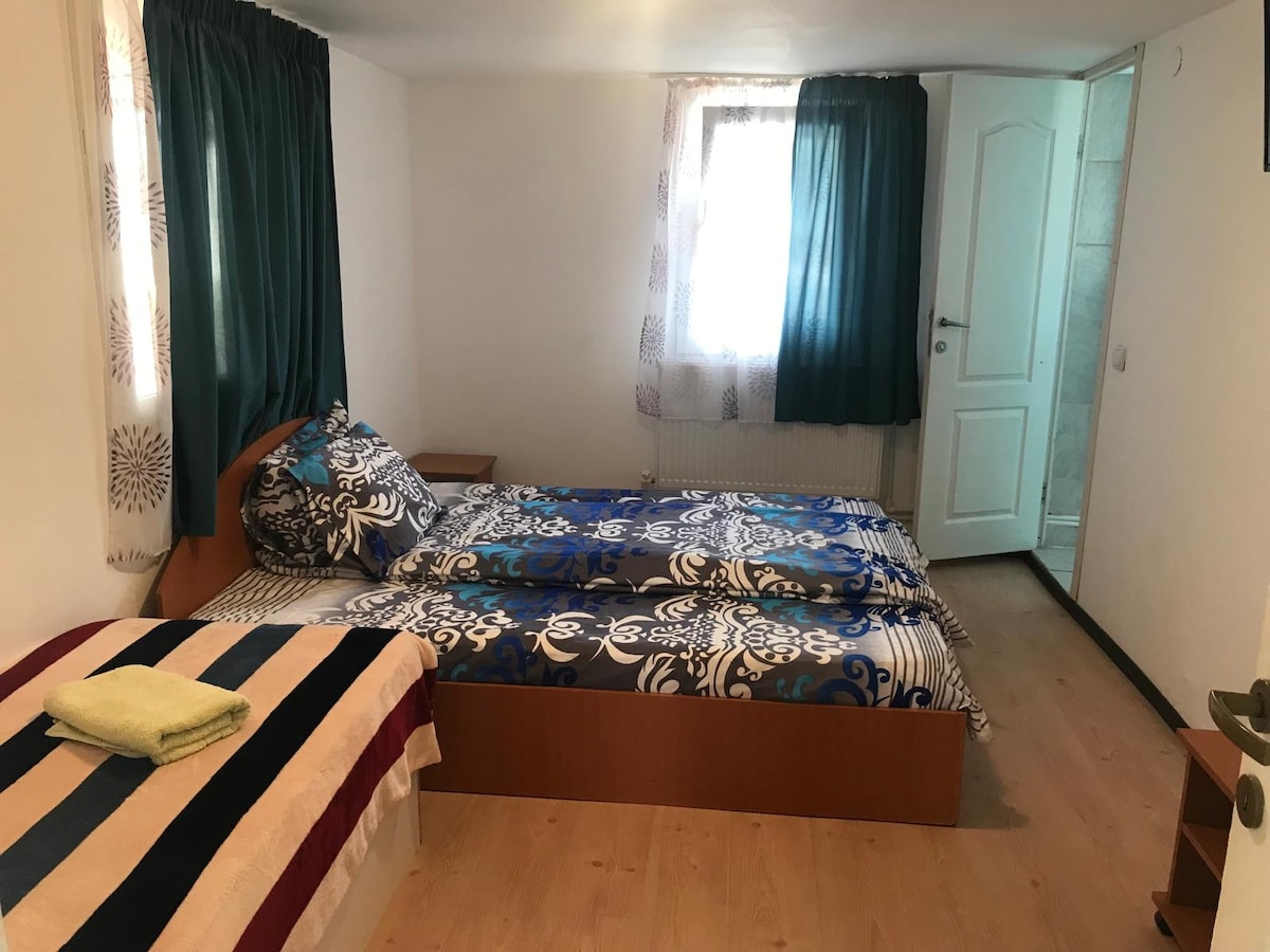 Dvosoban moderan stan , može da ugosti do 6 osoba, 3 aduls + troje dece. Glavna spavaća soba sa bračnim krevetom Spavaća soba 2 sa 2 x kreveta za jednu osobu Dnevna soba sa 1 x kaučem. Wi-Fi + TV je prisutan, kao i svi sadržaji da se osećate kao kod kuće.