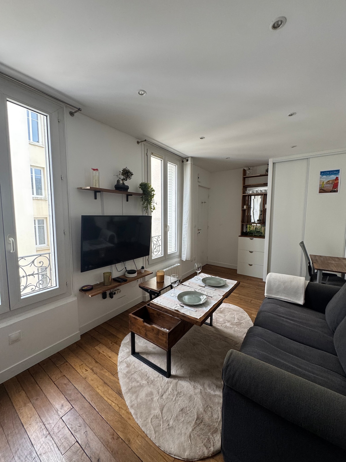 Uronite u dvosoban, ukusno renoviran stan u živopisnom Levaloisu, u blizini prodavnica i prevoza. Svijetla, moderna, sa mirnom spavaćom sobom i dnevnim boravkom sa pogledom na lokalnu pijacu. Sadrži mašinu za pranje i sušenje veša, mikrotalasnu pećnicu/rernu, Nespresso, TV sa Netflix-om i Prime-om, frižider i brzi Wi-Fi. Dva minuta od metroa, 10 minuta do centra Pariza. Idealno za elegantan i praktičan životni doživljaj.