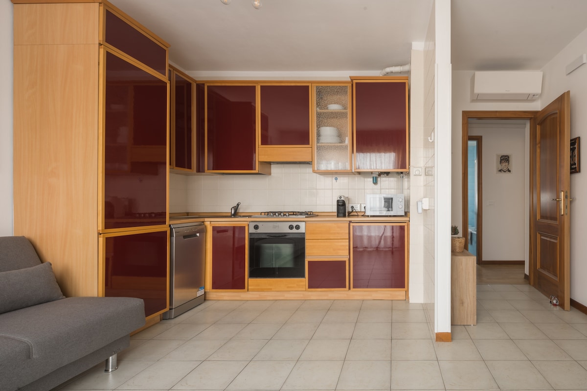 Centralni stan 300 metara od terminala vaporetto do Venecije. Nedavno renoviran, veoma svetao na prvom spratu veoma elegantne zgrade. Nalazi se u sporednoj ulici glavne avenije, gde se nalaze prodavnice, restorani, apoteke i supermarketi. Plaža je udaljena oko 400 metara, besplatna i opremljena . Mogućnost iznajmljivanja bicikala ili skutera nekoliko metara od kuće. Odlično rešenje za one koji žele da kombinuju umetnički odmor sa odmorom uz more.