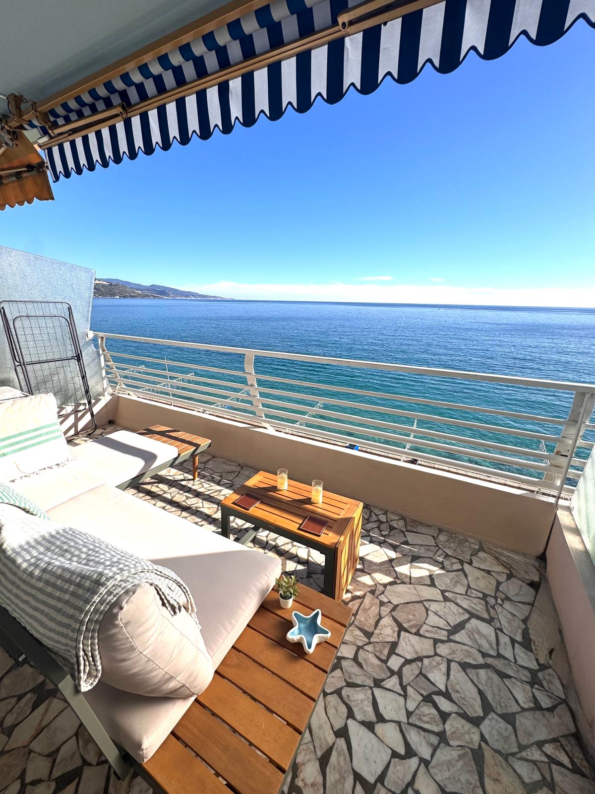 Udoban studio od 28 m2 za 2-3 osobe s balkonom prikladnim za život i direktnim pristupom moru. Udaljen je 5 minuta hoda od stanice, 10/15 od glavne ulice (5 automobilom) gdje ćete naći prodavnice, kancelariju za informacije i autobuse. Kapija kondominijuma otvara se na prelijepu stazu koja se proteže duž mora (sentier du Littoral), dužine 5,5 km, koja povezuje Plage Mala (15 min), opremljenu suncobranima, ležaljkama za sunčanje i barovima/restoranima, sa Monakom (25 min)