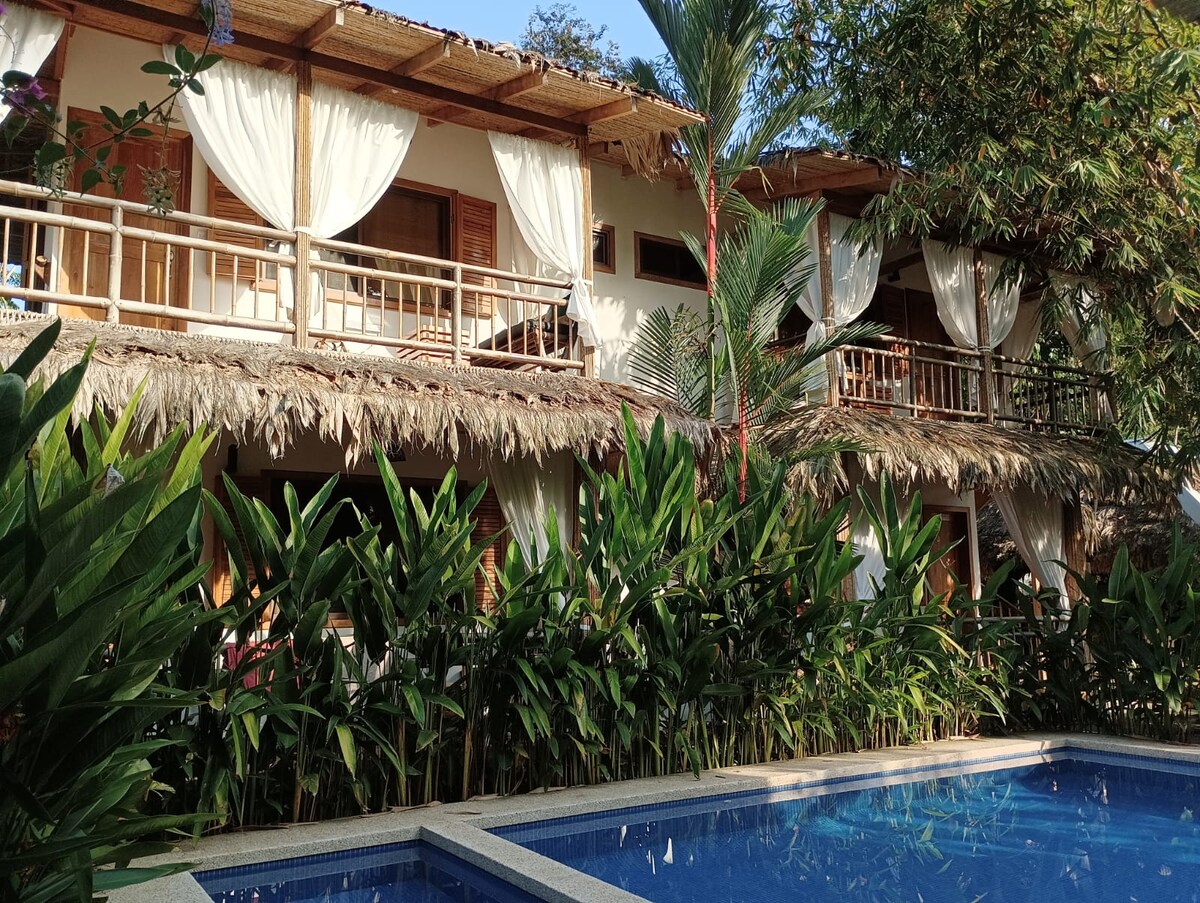 Suite Medina je elegantna jednosobna vila smještena u džunglama južne karipske obale Kostarike. Pješice do Pto Viejo de Talamanca u prelijepoj četvrti Plaja Negra. Okružen prirodom bez žrtvovanja udobnosti. Sa 2 klima-uređaja, namjenskim Wi-Fi mrežom, bračnim krevetom sa vrhunskom posteljinom, mokrim barom i privatnim unutrašnjim salonom, kompletnim kupatilom sa kadom za kupanje i budoarom. Uživajte u ukusnom bazenu za doručak svakog jutra pre nego što prošetate do plaže.