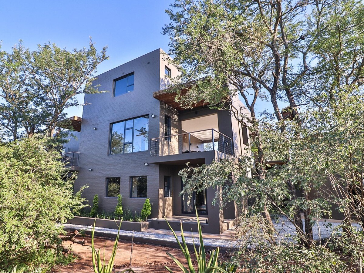 Tree-top Penthouse in the bush Brand new, our flagship home, Akasha Villa, is arguably the most exclusive in Marloth Park. It is as unique as it is private - the house is located on a cul-de-sac, adjacent to one of Marloth's largest parkland areas and right against Lionspruit. Enjoy the sounds of the bush including the nightly roars of lions. The minimalist and contemporary architecture of the home allows guests to feel in nature whilst surrounded by the creature comforts of home.