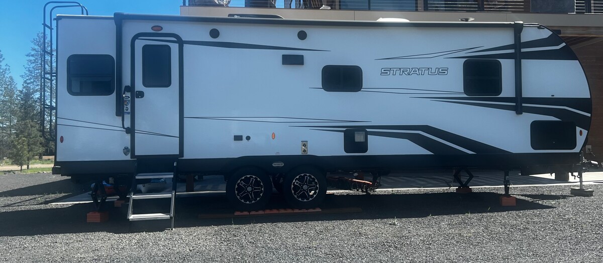 Beautiful 26 foot, 2022 Venture Stratus is parked on our private lot just five minutes from the Lincoln Mill boat launch. Our property overlooks Lake Roosevelt with expansive views of the mighty Columbia River. On any given day you can see Turkeys, Deer, Big Horn Sheep and Bald Eagles. Clean, comfortable bed, well-stocked with many amenities to include ice maker and gas fire place. Parking for truck and boat in front of the camper.