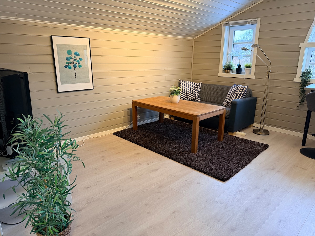 Ceo stan na drugom spratu. Velika dnevna soba sa čajnom kuhinjom, prostrano kupatilo i spavaća soba sa bračnim krevetom. Mirno i prirodno. Dobra polazna tačka za doživljaj južnog dela Norveške, sa samo oko 45 minuta vožnje do Kristijansanda, Mandala i Evjea. Ovo je mesto za zaustavljanje, ali i mesto za odmor! Manje od 1 sata vožnje do Zoološkog vrta. 15 minuta do reke Mandal poznate po lovu na lososa. Mnoge druge sjajne destinacije u okolini. Pogledajte slike i slobodno pošaljite poruku i zatražite turističkog vodiča! Dobrodošli!