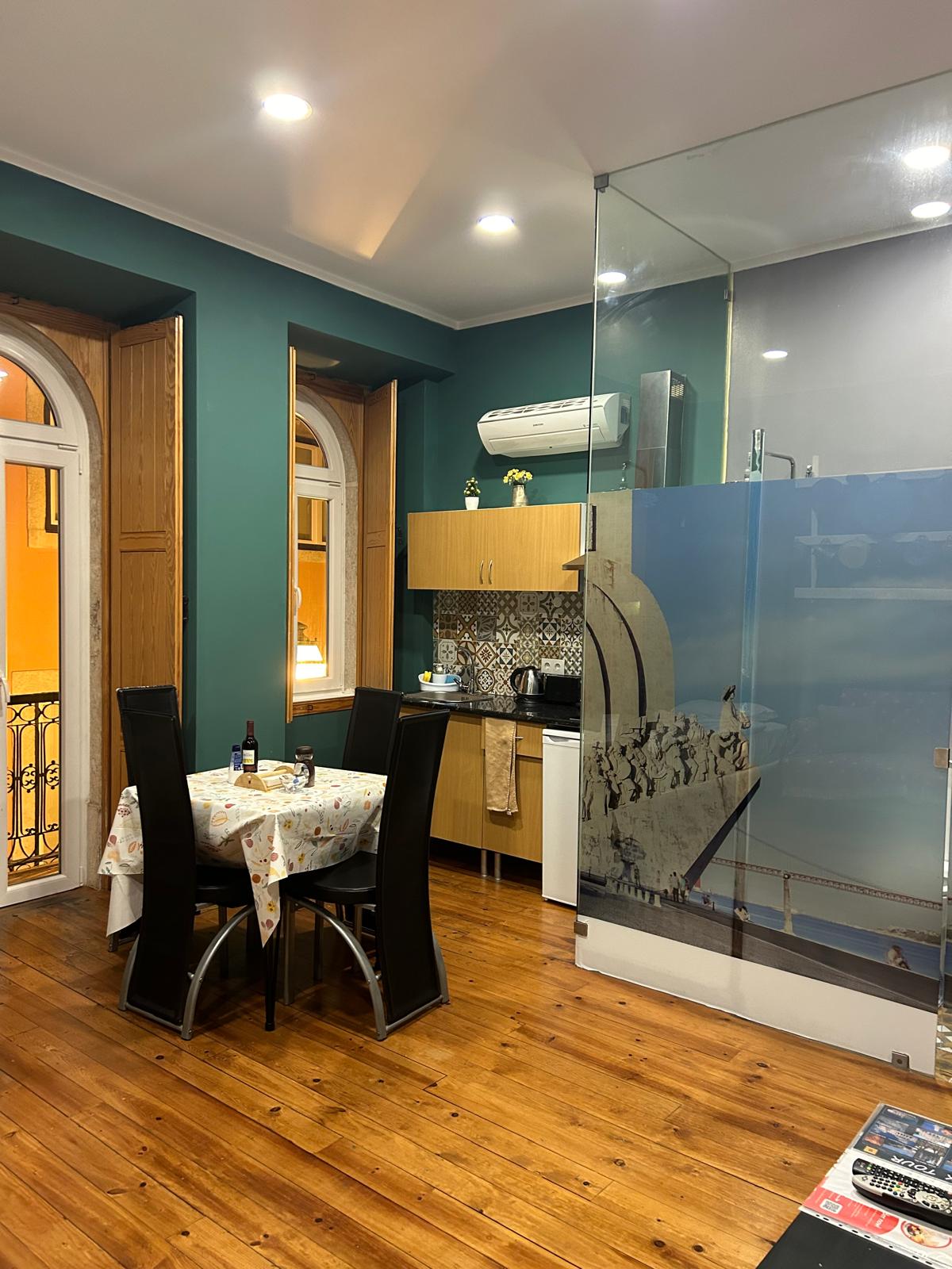 Apartment in the heart of Lisbon. This one-bedroom apartment with a sofa bed features a double bed, a bathroom, and a fully equipped kitchen with a refrigerator and a washer/dryer. The living room opens onto balconies with a table and two chairs for outdoor use. Located just a few steps from historic cafés, traditional shops, iconic trams, and the Tagus River, it is the ideal starting point to explore Lisbon.