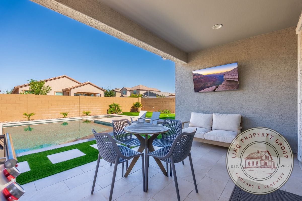 Enjoy a cozy private yard with a pool & spa. BBQ, patio furniture and sun lounge chairs. Relax in a fully air conditioned home, enjoy a 70" smart TV, games, and a well stocked kitchen. Close to Westgate Entertainment district, Spring Training baseball, State Farm Stadium, Top Golf, Wigwam Golf Course and pickleball! Pool & spa heat is available upon request for $70/night. Spa heat only is $35/night. Fees to be paid through the resolution center prior to use. TPT #21458012 STR# STR0000032