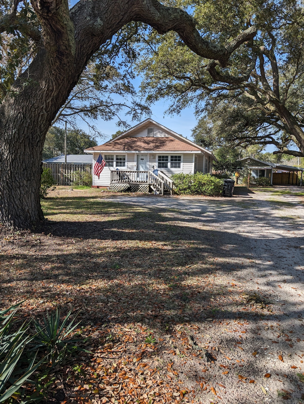 Opustite se i uživajte u našoj udobnoj seoskoj kućici na plaži usred veličanstvenih živih hrastova. - Manje od 100 koraka do plaže (javni pristup u objektu) - Moderno renoviranje „plaže“ (SVI NOVI UREĐAJI/klima-uređaj/GREJANJE) - Bojler za vodu bez rezervoara = beskrajna TOPLA voda za celu porodicu - Prikladno za pse (bez pasmine ili ograničenja u veličini) Naknada za kućne ljubimce = 80 USD - Kuhinja na otvorenom/ roštilj - BESPLATAN parking - Dolazak bez gnjavaže sa šifrom sigurnog ključa - 70-inčni pametni TV sa ravnim ekranom - Seoska kućica na velikom dvokrevetnom - Nema povraćaja novca zbog vremenskih uslova