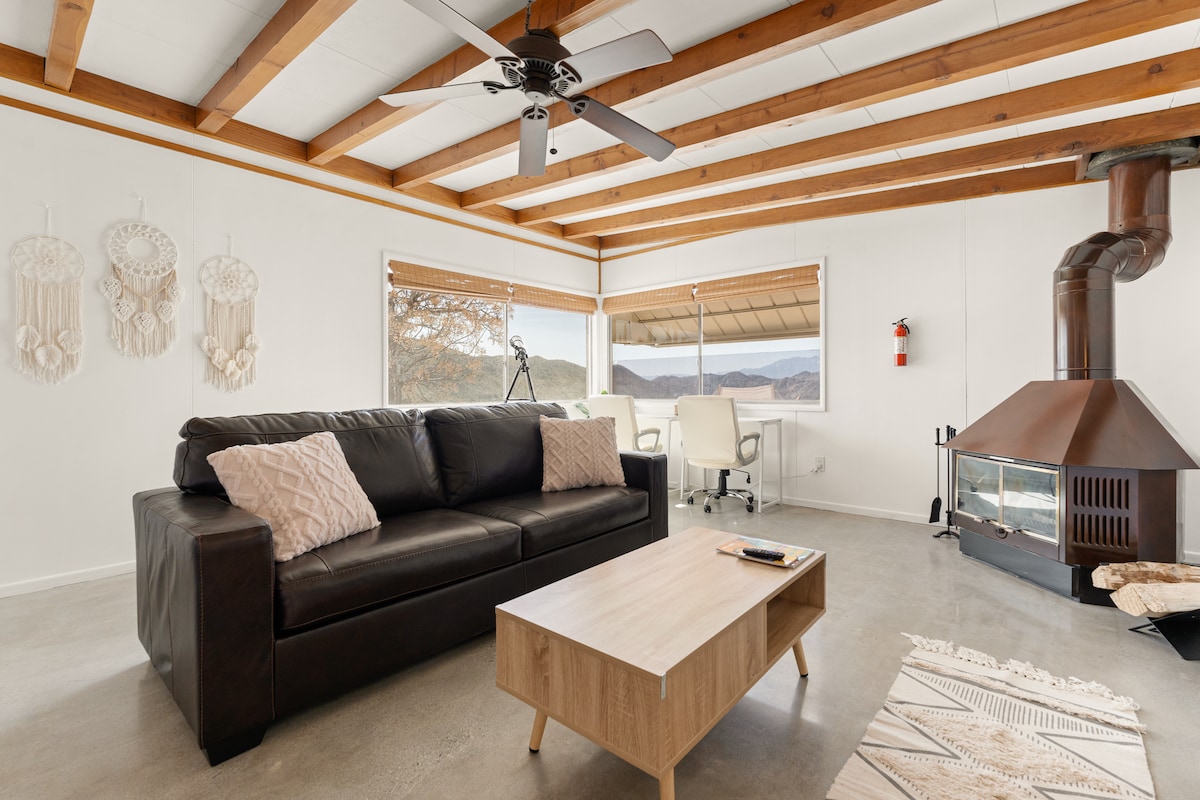 Treat yourself to a Desert Retreat. This 1 bedroom, 1 bathroom home invites you to hear, see, and feel everything Southern California's high desert offers. Mountain views, Saguaro Cacti, citrus trees, and so much more can all be taken in from the comfort of a lounge chair in this sprawling 5 acres. Private, yet conveniently near Joshua Tree National Park, Morongo Casino, Pioneer Town, shops, and restaurants, you can escape the noise of everyday life without sacrificing any of its comforts
