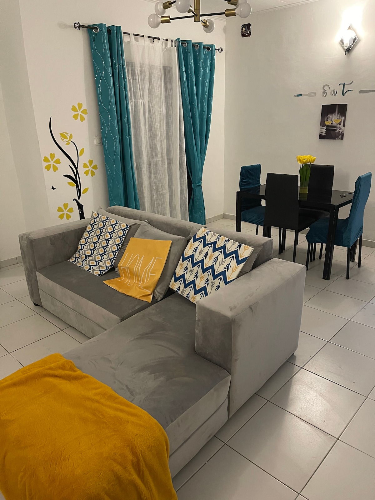 Ce logement est hyper propre, climatisé et nouvellement aménagé. Ceci vous permettra de vous sentir comme chez vous. L'appartement est situé à quelques mètres d'un supermarché de renommée, facilitant vos achats. Une dame de ménage est mise à votre disposition éliminant vos soucis de tâches ménagères.
