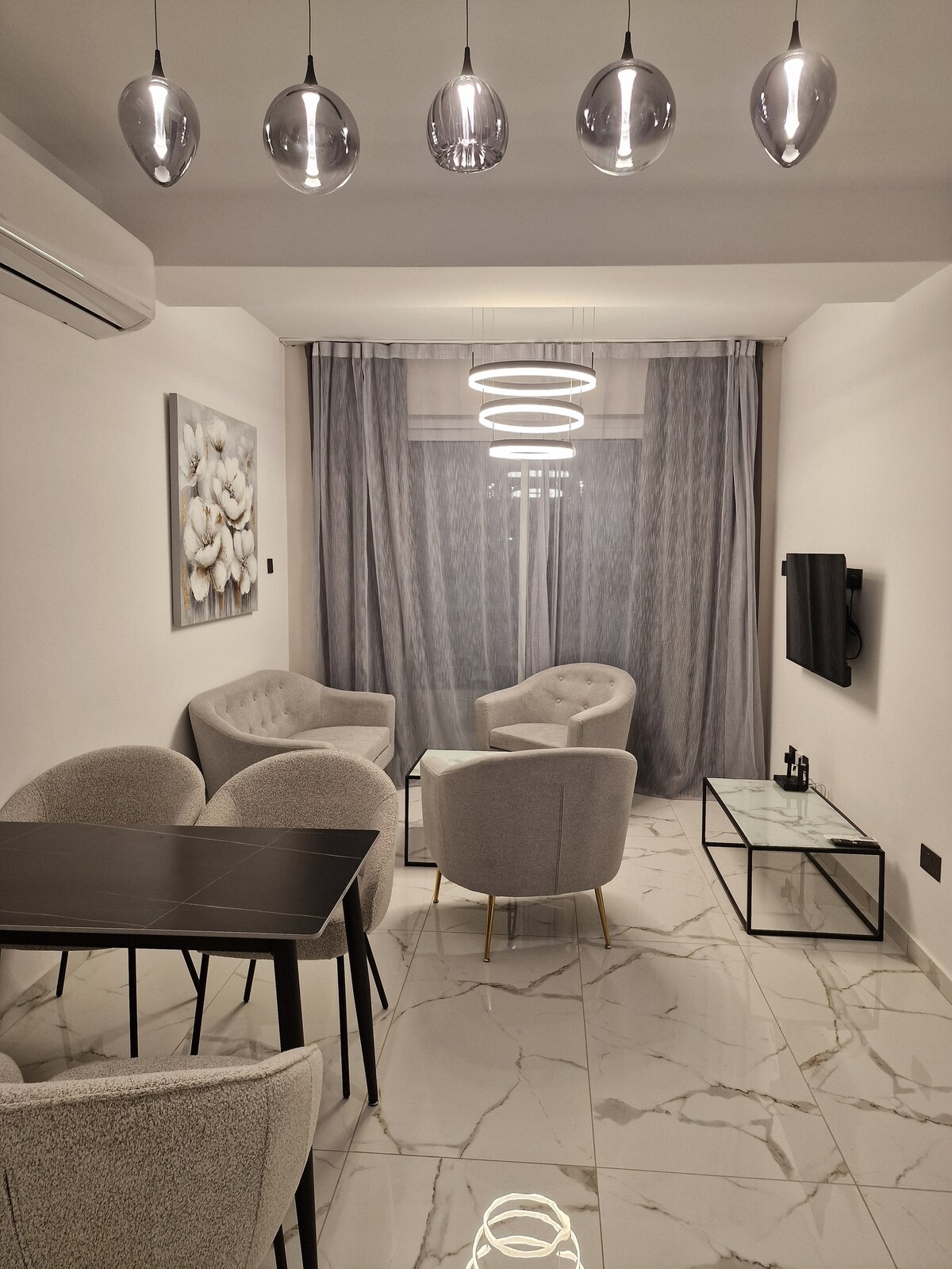 Welcome to our Chic & Modern 1-Bedroom Apartment! This brand-new, tastefully designed apartment offers a cozy and elegant home away from home in a quiet neighborhood, just minutes drive from downtown Larnaca and within walking distance to the beach. Enjoy the comfort of a stylish living area and unwind on the private balcony with lovely side views of the sea - perfect for a morning coffee or a relaxing evening. Ideal for both short getaways and extended stays.