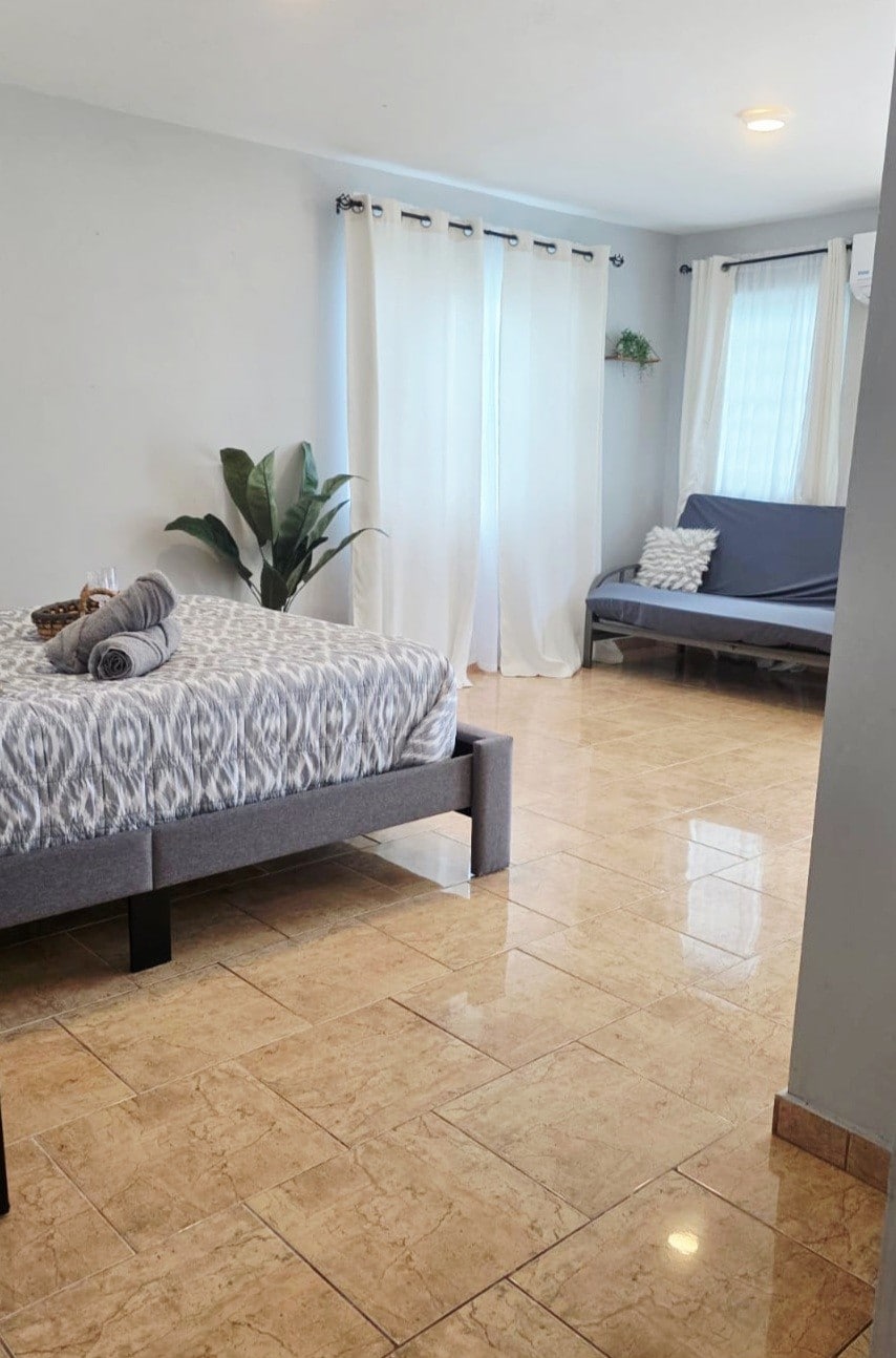 Veliki i udoban smještaj sa klima-uređajem! Nalazi se samo nekoliko minuta od prelijepih plaža El Combate, plaže Playuela (playa sucia), zaliva Bokueron i Poblado, svjetionika Kabo Rojo, Salinas de Kabo Rojo (slani stanovi), utočišta za divlje životinje, lokalnih restorana i nekih od najboljih biciklističkih staza u Portoriku, sve to udaljeno samo 10 minuta vožnje! Uključuje WI-FI, Smart TV sa Netflix-om, pristup bašti i besplatan parking!