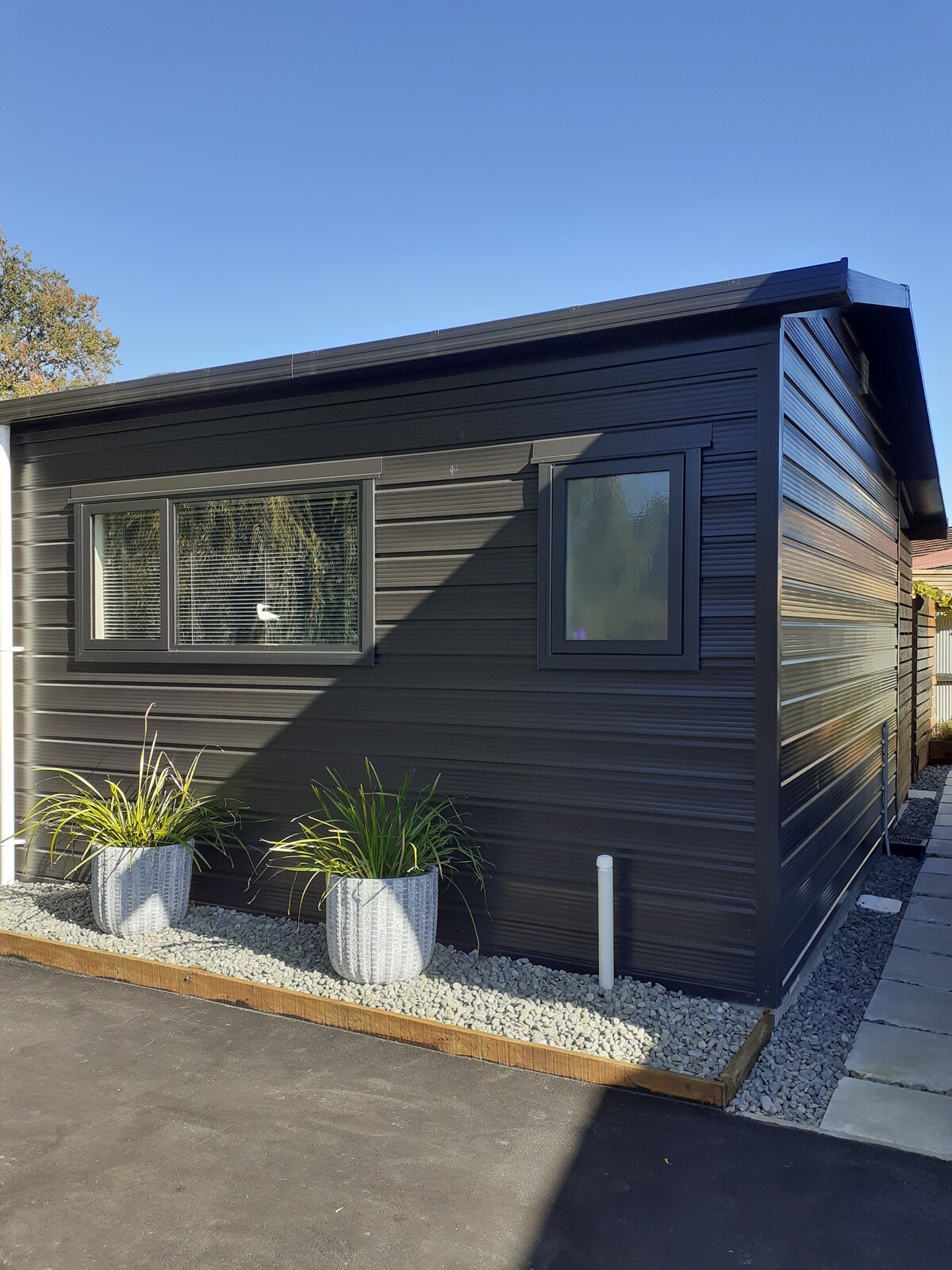 Modern studio conversion. Private en-suite bathroom and kitchenette. Private Patio area. Perfect space to relax. Free off street parking. Separate from main house with own entrance. This is your own space and a great base from which to explore Christchurch. * 5 mins - Airport * 15 mins - Central City * Basic Breakfast included * Nespresso Coffee * Air Conditioning/ Heat Pump * TV with Netflix * Fast Wifi * 24 hour Lockbox * Multi-night discounts * Pet Friendly * Ecostore bathroom products
