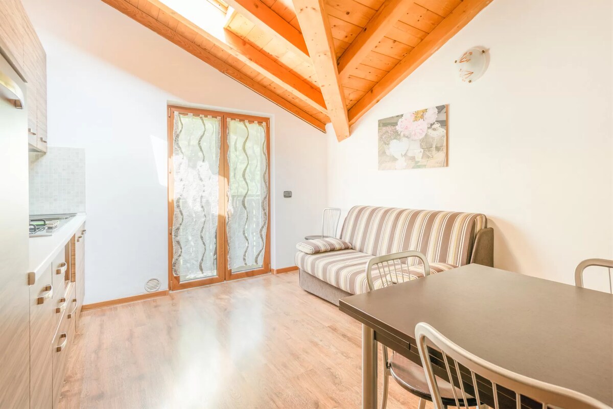 Ledro, lokacija Mezolago, ulica Cavezzi 5 Mini apartman opremljen svim udobnostima, potpuno opremljen novim nameštajem, besplatan Wi-Fi, spoljašnji prostor opremljen malim stolom i stolicama, ruralna i tiha lokacija veoma blizu plaže do koje se lako stiže peške za 5 minuta, supermarket udaljen 1 km, mogućnost iznajmljivanja jedrilica, pedala, kanua i električnih bicikala. Lokacija na 650 metara nadmorske visine sa mogućnošću bavljenja mnogim sportovima u okolini.