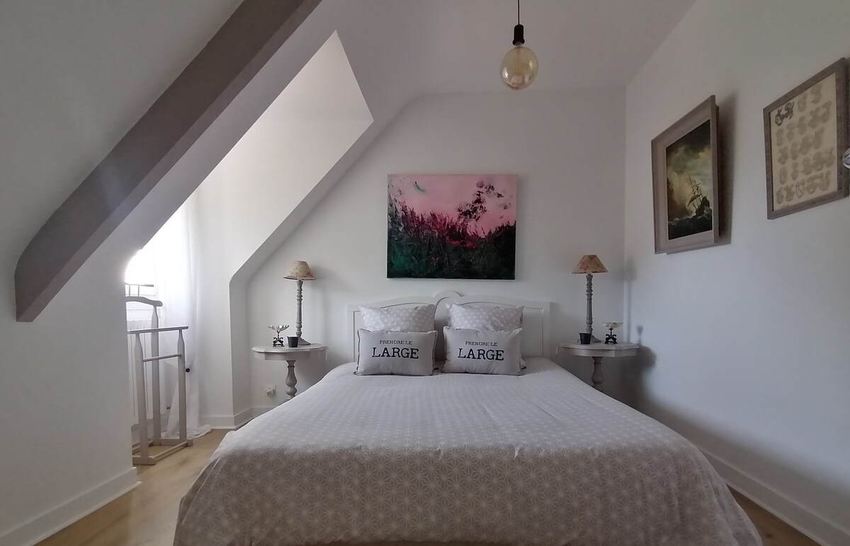 Nedavno renovirana seoska kuća koja pripada Manor kući uz more. Ukusno uređen od strane vlasnika (slikara i arhitekte) - potpuno opremljenih sa svim potrebnim potrebama na odmoru - udobne spavaće sobe sa kupatilima sa kupatilima, terasa okrenuta ka zapadu sa roštiljem, mašinama za pranje i pranje veša. Sunčan i prostran dnevni boravak. Télévision, internet, muzički sistem. More je udaljeno 3 miliona hoda. Šarmantno selo sa pijacom i supermarketom udaljeno 4 mns od kuće. Teren za golf 10 mns automobilom.