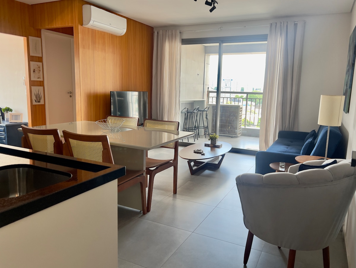 Apartamento Maravilhoso (50 mt²) a 120 metros do Hospital Albert Einstein, no Morumbi. Novíssimo, recém decorado, móveis de primeira linha, cheio de equipamentos na cozinha e pronto para entrar. 1 suite, 1,5 banheiros e um sófá-cama delicioso.