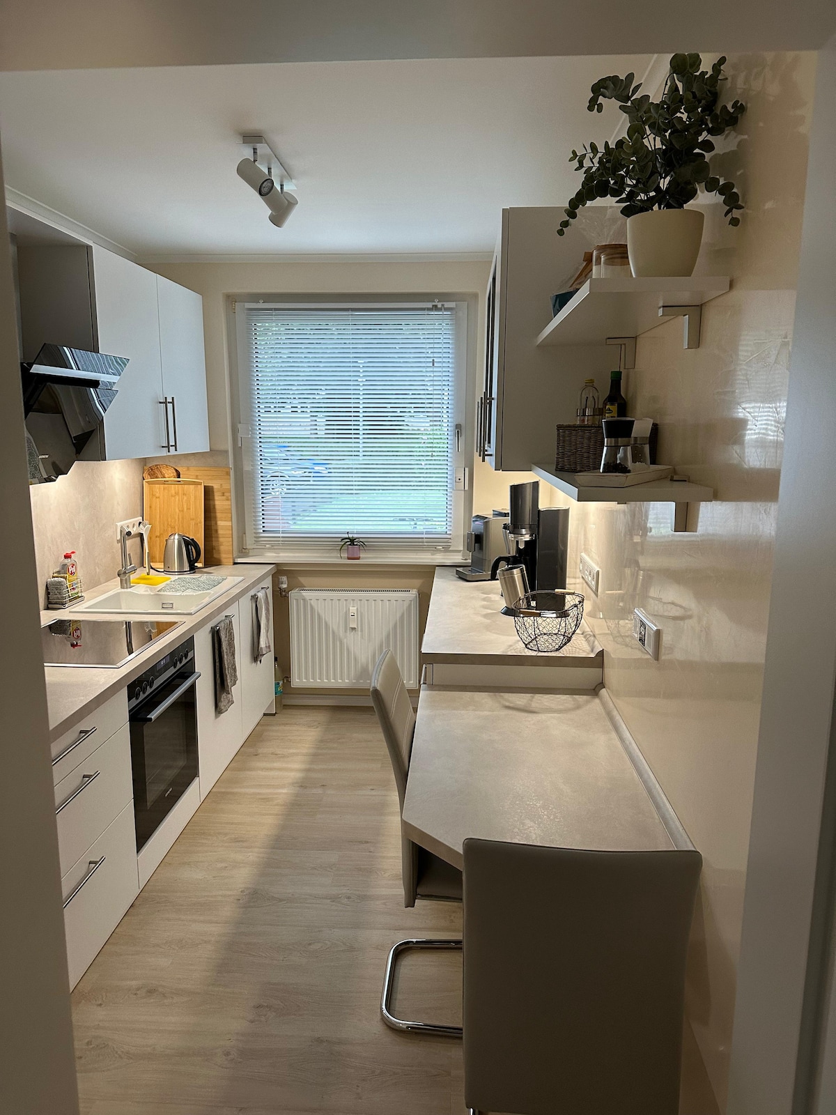 Mi smo mlada porodica i nudimo vam ljubazno uređen stan u okrugu Kasel – dizajniran u skladu sa motom „Kao za sebe“. Stan ima oko 20 m², delimično natkrivenu terasu i baštu. Nameštaj ne ostavlja ništa što se može poželeti: od začina i društvenih igara do mašina za pranje veša, mreža protiv insekata i proizvoda za negu. Na mirnoj lokaciji, grad Dokumenta Kasel udaljen je oko 15 minuta.