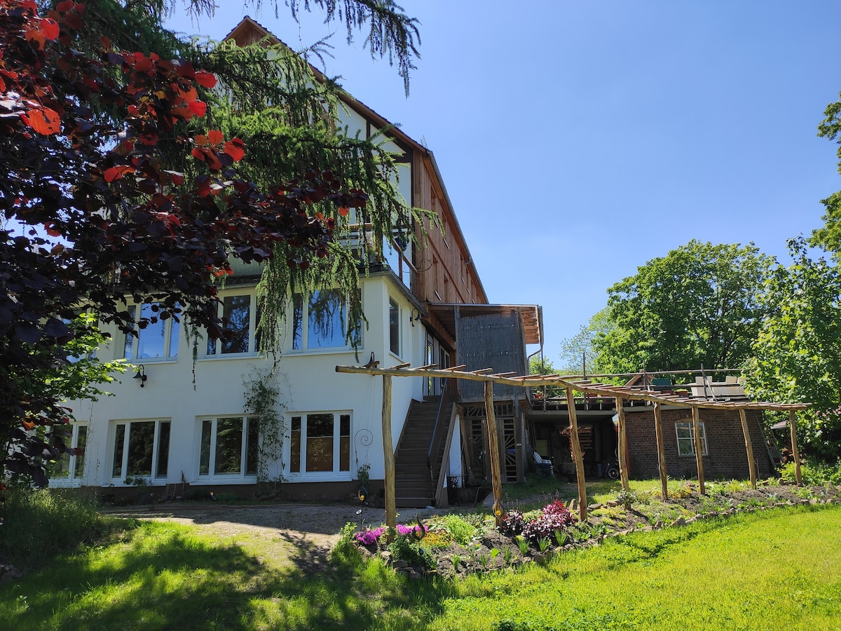 Elegantno istorijsko dvorište od pola drveta, u kombinaciji sa modernim dizajnom enterijera i trenutnom tehnologijom. Vozači na planinarenju su dobrodošli. Pejzaž vas poziva na planinarenje (Kaufunger Wald, Park prirode Münden), vožnju biciklom, ali i da posjetite Kassel ili Göttingen (npr. Svetska baština Kassel Bergpark). Do oba grada se može doći za najviše 30 minuta automobilom. Bajkeri su takođe dobrodošli. Ima dovoljno prostora za konje ili motocikle/ bicikle.