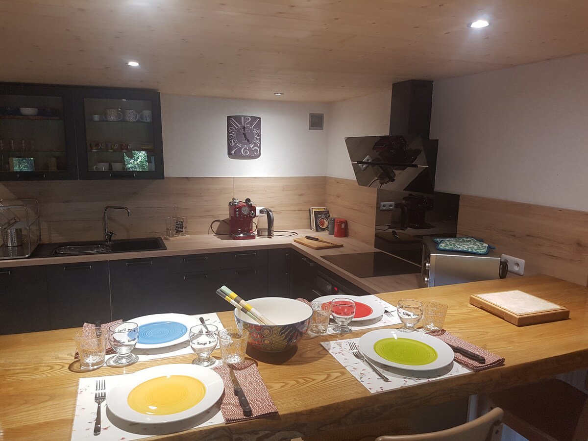 The house is a recently built and welcoming chalet. You will enjoy a region ideal for hiking or discovering a rich local heritage. Located in a peaceful hamlet, you will be welcomed by Sam and Krisha, our friends and English neighbors. At 10 minutes from the highway (A89), between Lyon and Clermont-Ferrand, the house can welcome 4 adults or a family with two children properly. The breathtaking view invited us to built this house, we want to share it with you...
