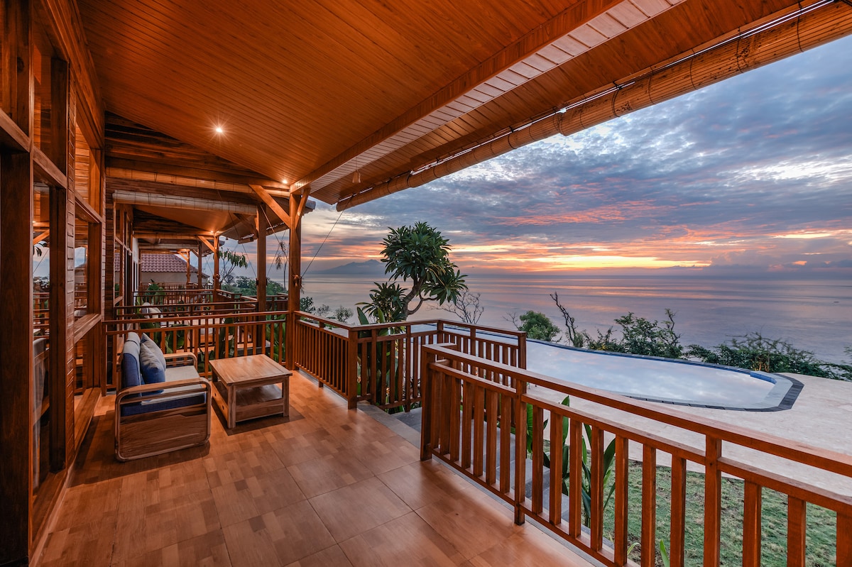 K A L M Eko kolibe od bambusa su eko odmaralište sa 3 privatne vile koje se nalaze u srcu Kuta Lomboka na vrhu brda Mong, okružene prirodom sa pogledom koji oduzima dah. Vila Mana je ekskluzivna dvospratna vila od bambusa sa bračnim krevetom, balkonom, pogledom na džunglu, visećom mrežom, potpuno opremljenom kuhinjom, Wi-Fi mrežom, mini barom i privatnim bazenom. Imajte na umu da pristup odmaralištu još nije asfaltiran, da će vam biti potreban automobil ili ćete biti iskusan motociklista. To je skriveni dragulj!