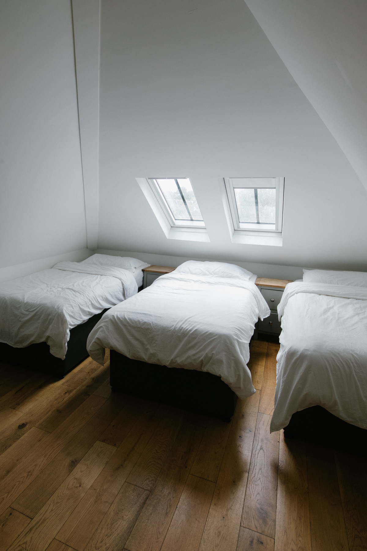 Private 4-bed room with rooftop terrace with * Epic views towards Canary Wharf * 1 comfy bunk bed - each bed equipped with mobile phone holder/USB socket, small safe with sockets/adapters and small fan * 1 comfy double bed * private shower and toilet facilities en-suite * free WIFI * minimum age 18! Breakfast and towels can be added for a small fee. For the check-in the presentation of an official photo ID is required.