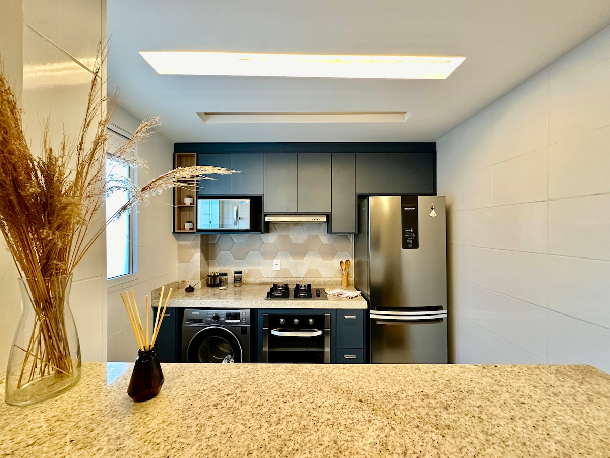 Zamislite da stignete i osećate se kao kod kuće: kafa dobrodošlice, tišina i svaki detalj osmišljen za vašu udobnost. Nežna svetlost, prostorija sa velikim ogledalom, aroma kafe ujutru i trg odmah tu stvaraju atmosferu mira. Sve u blizini – UTFPR, pijaca, pešačka staza, aerodrom i centar grada. Utočište koje vas dočekuje, smiruje i tera da poželite da ostanete još jedan dan. DOBRO DOŠLI U SVOJ PRIVREMENI DOM