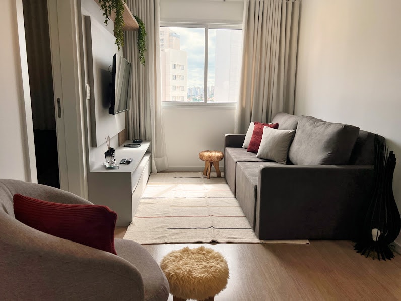 U srcu Gleba Palhana - potpuno novi stan sa vazduhom kondicioniranje u svim prostorijama 📍 Privilegovana lokacija za sve što možete da uradite pješke! • Samo 100 metara od prodavnice Aurora Shopping • 11. sprat, sa pogledom i udobnošću • 1 soba opremljena klima-uređajem i TV-om • Trpezarija i dnevna soba su integrisani, sa klima-uređajem i TV-om • Potpuno opremljena kuhinja • Mašina za pranje i sušenje veša u stanu • Prostor u garaži je označen