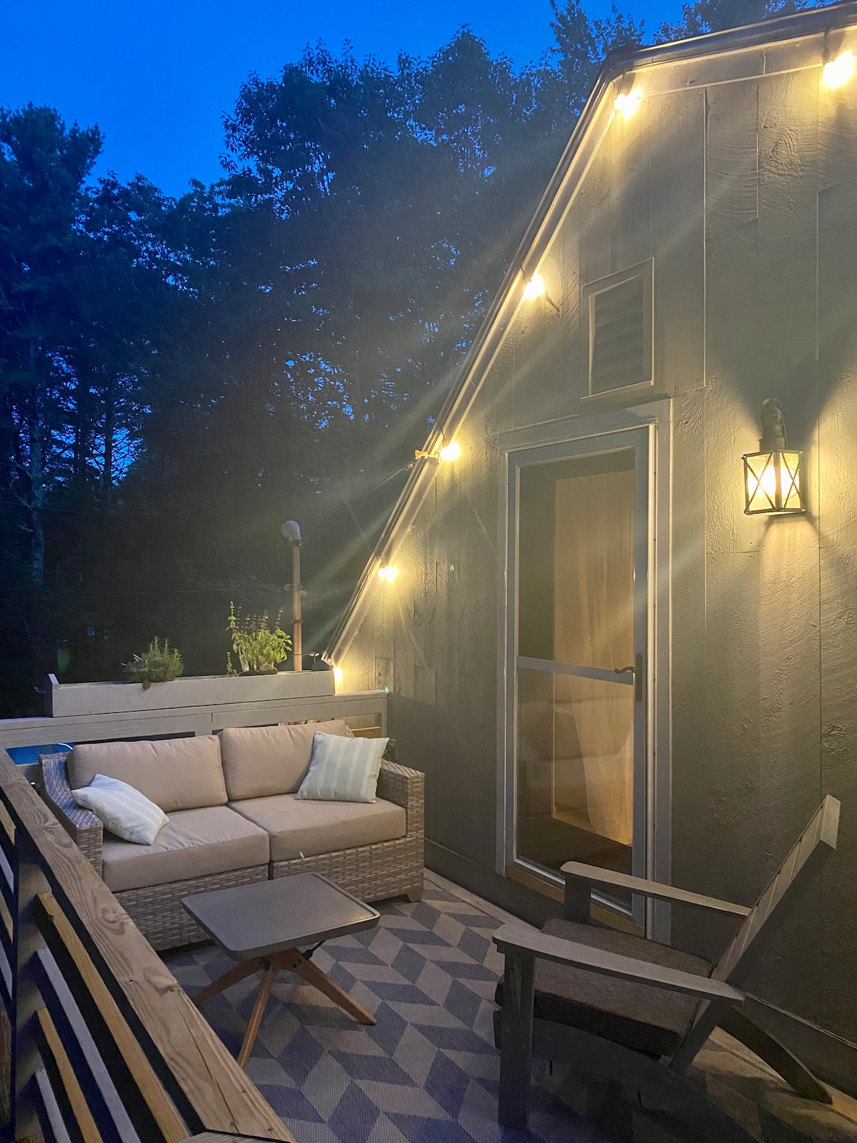 Guest cabin in a private setting down a private road with short walk to Cape Neddick Beach and a secluded pebble beach. Guests have exclusive use of the firepit, outdoor sitting area and hot tub. The cozy and rustic post and beam cabin has two levels with a ladder to the loft level. Private and romantic for a couple, fun for a couple and one or two kids or just two adults.