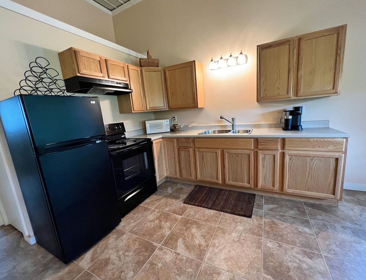 Veličanstveno privatna, bez osjećaja usamljenosti, ova šarmantna gostinjska kuća je potpuno ažurirana 2019. Uživajte u miru i tišini. Prošetajte ili se provozajte biciklom na više od 28 hektara ili prilično ruralnim stazama. Jezero Robertson udaljeno je 2,5 milje za aktivnosti . Sedite i na trem! U snežnoj noći uživajte u kaminu na drva . (Često ostavljamo kamin pripremljen za paljenje. Takođe grejanje na gas). Udobno se smestite sa kompletnom kuhinjom, mašinom za pranje/sušenje veša, igrama i knjigama. DirecTv u dnevnoj sobi i spavaćoj sobi. Takođe!