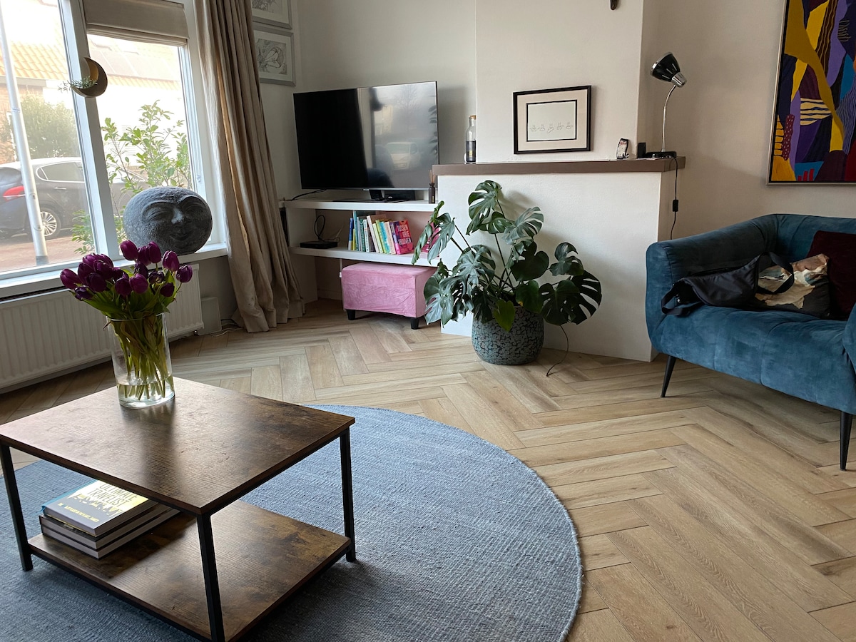 Naša divna seoska kuća ima sunčanu terasu s pogledom na voćnjak jabuka. Parking ispred sopstvenih ulaznih vrata i Wi-Fi su dostupni u cijeloj kući. Seoska kućica ima TV ravnog ekrana, modernu kuhinju s mašinom za pranje sudova, predivno svijetli prostor za sjedenje, prostranu spavaću sobu s izuzetno dugim krevetima, luksuzno kupatilo s tušem i kadom. Ukratko: sve što vam treba za divan opuštajući odmor. Plaža na 15 minuta vožnje Amsterdam je za 30 minuta vozom Lajden traje 5 minuta pješke. Udoban centar Sasenhajma udaljen je 5 minuta hoda!