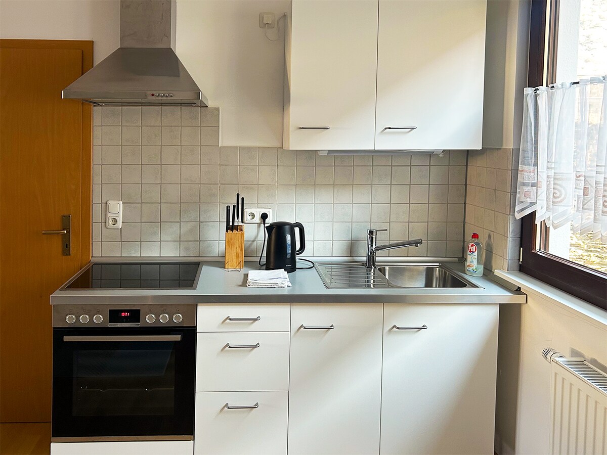 Proširili smo bivšu komoru za žito pod krovom starog Zollburga: 3 dvokrevetne sobe, 2 kupatila i 1 kuhinja-dnevni boravak, idealni za udoban boravak sa istorijskim ambijentom. Na raspolaganju vam je i kutak za cvijeće u dvorištu sa stolom i klupama. Grad, park i pristanište za brodove su u blizini. Rajna, Lahn i Mosel sa dvorcima i istorijskim mjestima nude bezbroj mogućnosti izleta. Posjetite nas u dvorcu Martinsburg u Lahnštajnu!