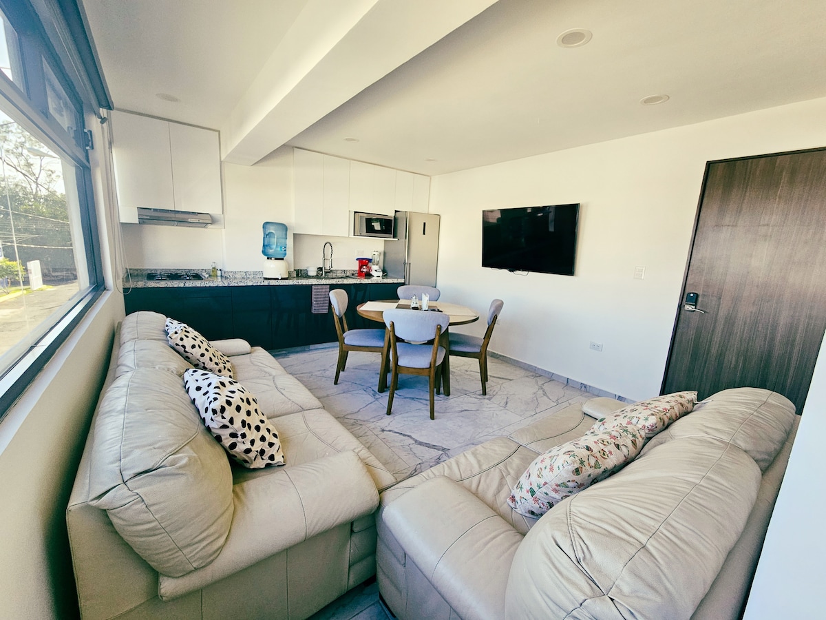 Uživajte u boravku u ovom malom, ali vrlo udobnom stanu koji je renoviran i opremljen svim udobnostima u kojima ćete se osjećati kao kod kuće. Lokacija je idealna za turizam i/ili poslovanje jer je udaljena 15 minuta od Kapua, 10 minuta od Parka Puebla, stadiona i Kongresnog centra. Prošetajte do istorijskog centra Pueble i područja Fuertes. Stan se nalazi na drugom spratu u zatvorenom kompletu sa video nadzorom i fiokom za parkiranje.