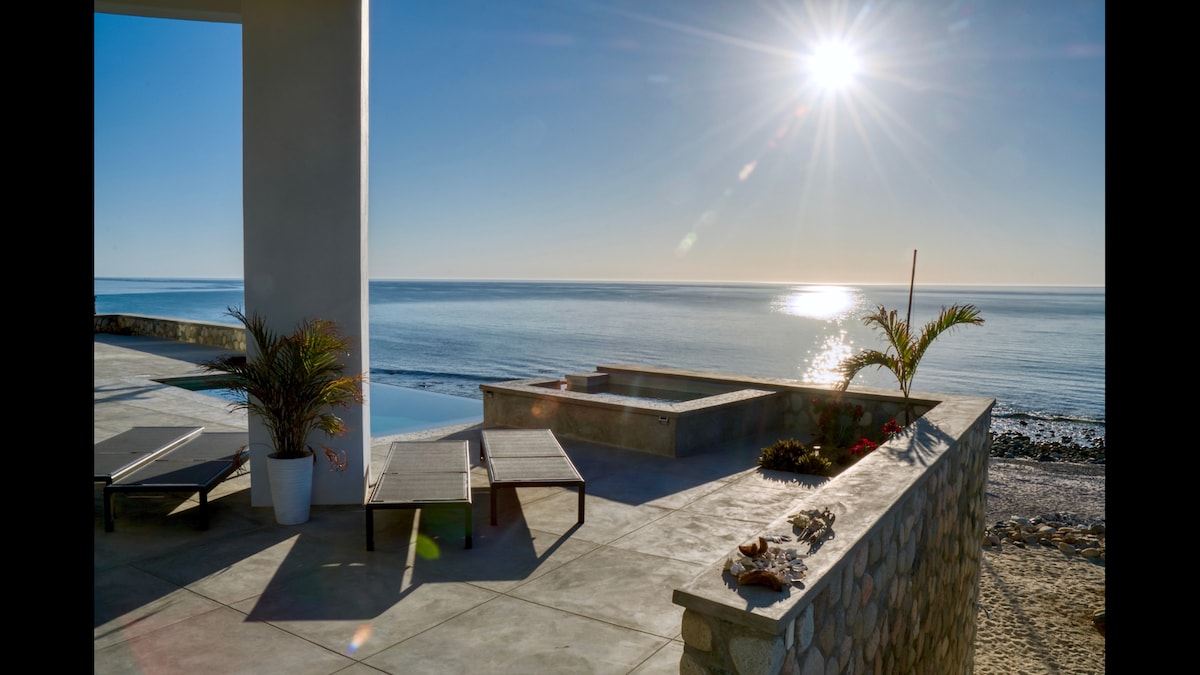 VELIKI IZVRŠNI DOM na plaži mora Kortez sa pogledom na okean i planine sa svakog prozora. Predivno namešten sa umetničkim meksičkim nameštajem. Od materijala i boja koje slave lokalnu kulturu do kupanja u prirodnom svetlu, uživaćete u sjajnoj kuhinji, 4 spavaće sobe, 3 kupatila i profesionalnom bilijarskom stolu pune veličine nasuprot prostranoj dnevnoj sobi. Napolju se nalazi roštilj na otvorenom, veliko unutrašnje dvorište, bazen, pa čak i vidikovac na krovu i bar.