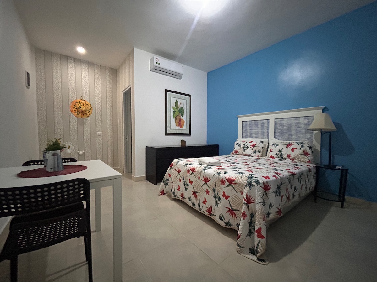 Habitación al lado de la PLAYA está ubicado en la zona de El Cortecito, antiguo pueblo de pescadores, Las playas son de arena blanca y fina de color azul verdoso. Esta en el corazón de Bávaro a unos minutos caminando de la zona principal de bares y restaurantes. Esta habitación con una cama Queen, wifi, Tv, Aire acondicionado, baño con agua caliente y una pequeña sala de estar. Tiene 2 niveles y si, al lado de la playa misma.