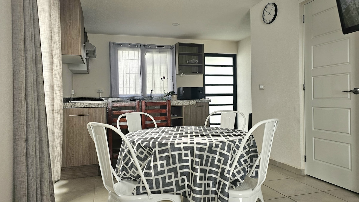 Departamento moderno y cómodo, ideal para estancias familiares o viajes de trabajo. Excelente opción para vacaciones familiares, con acceso a alberca. Perfecto para ejecutivos o viajes de negocios. Facturación disponible. Wifi rápido y estable. Dos camas matrimoniales (para 4 personas). Smart TV (con Sky). Ubicación estratégica, cerca de parques industriales y del Ecocentro Expositor. A 15 minutos del centro de Querétaro y del Aeropuerto. Fraccionamiento privado con vigilancia las 24 horas.