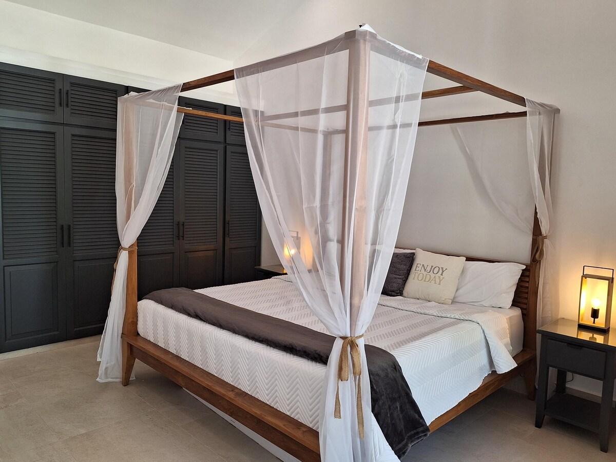 Izuzetno privatna vila na uglu jer imate samo jednog komšiju odvojenog živicom od 2,5 metra. Imate sopstveni privatni bazen sa roštiljem u dvorištu. Samo 7 minuta hoda do privatne plaže u ovoj ograđenoj zajednici prikladnoj za porodice. Bezbedno, lepo i mirno. Imamo mnogo poboljšanja u cijeloj vili, uključujući namještaj i kuhinjske potrepštine. U baštama ćete naći bananu, limetu, zvjezdano voće, guanabanu i stabla avokada. Uživajte u zrelom voću tokom boravka.