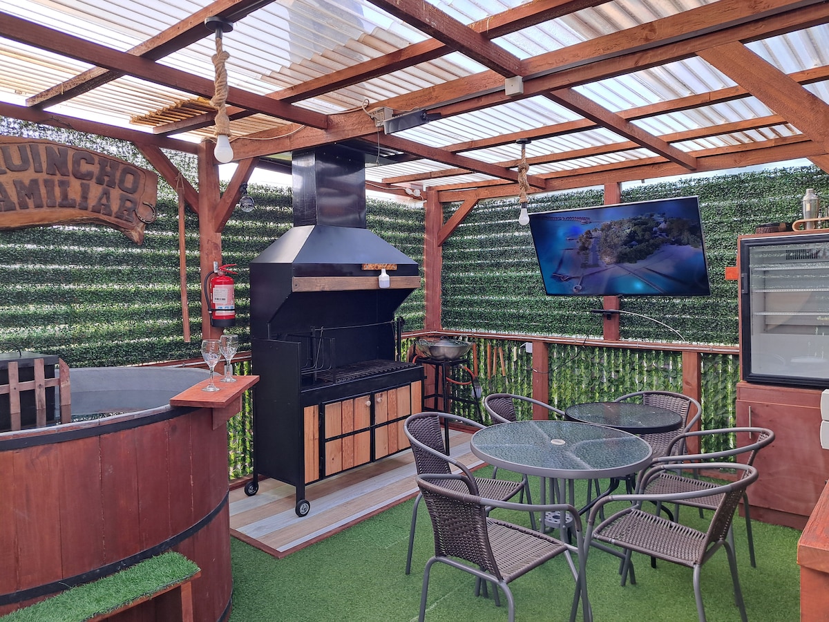 Divna seoska kuća u Lago Ranku, s pogledom na vulkanski kompleks Cordón del Caulle. Nalazi se na 10 minuta od plaže i 30 minuta od parka Futangue. Ima dve spavaće sobe; prva sa ormarom za šetnju, kupatilom, bračnim krevetom i dva kreveta za jednu osobu. Drugi sa bračnim krevetom i kupatilom izvan sobe. Prostrani, svijetli dnevni boravak i trpezarija dvostruke visine i potpuno opremljena čajna kuhinja. Terasa sa hidromasažnom kadom za 6 osoba, dnevnim boravkom, trpezarijom i roštiljem marke Weber.