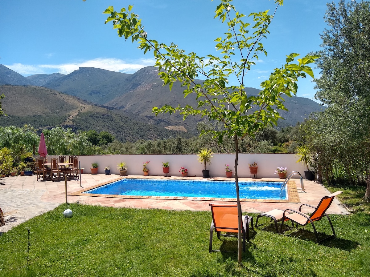 Prelepa, moderno uređena kuća u dolini okruženoj planinama, smeštena na hektaru zemljišta sa privatnim bazenom. Parking, sigurna ograda koja okružuje objekat. Dve spavaće sobe, kupatilo i tuš-kabina, šporet na drva. Salon i kuhinja otvorenog plana. Krovna terasa sa pogledom na planine. Potpuno privatno. Voćke, masline, sadnice i vinova loza, neke plodove. Mirno područje, lokalna domaćica, želi da vam poželi dobrodošlicu. Pola sata od najbliže plaže, sat vremena od Granade.