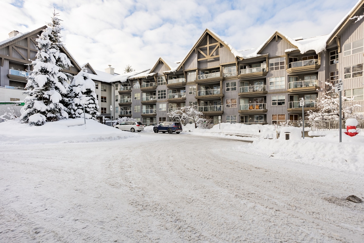 Dobro došli u svoju planinsku oazu. 1 minut hoda od lifta Blackcomb! Naš moderni kondominijum je svijetla, prostrana 1 spavaća soba s prozorima za savršen pogled na drveće i planine. Pogledajte pravo na planinu Visler dok pijuckate kafu sa kuhinjskog stola! Apartman ima sve: - bračni krevet (širine 180-220 cm - kauč na razvlačenje - Potpuno opremljena kuhinja, uključujući novu mašinu za sudove - hidromasažna kada za kupanje - Keurig - Bose zvučnik - centralna klima - nadograđena u julu 2025. Zgrada ima teretanu, vešeraj, bazen i hidromasažnu kadu na otvorenom.