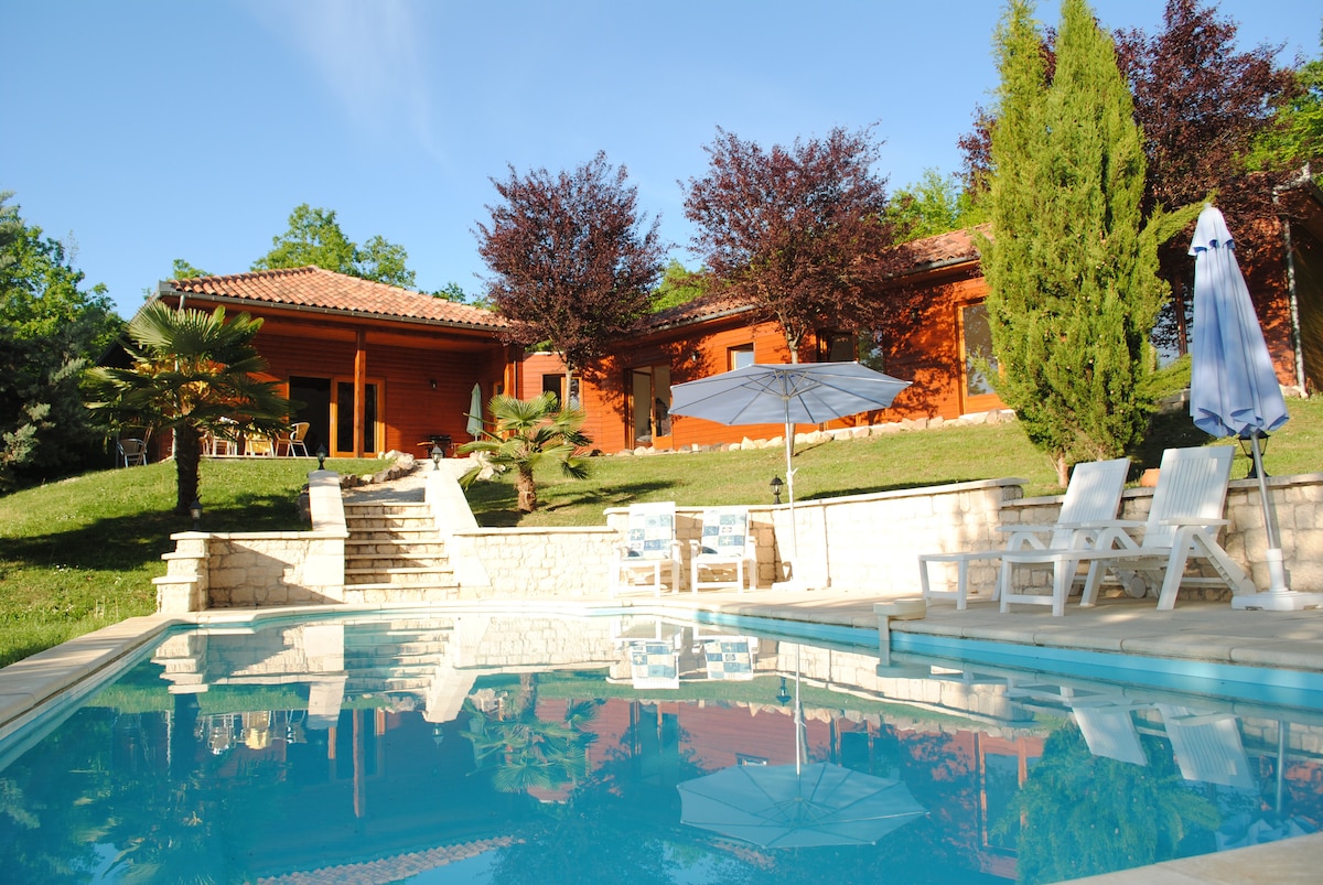 Dobro došli u naš predivni seoski dom smješten u valovitim šumovitim brdima. Uživajte u izuzetnom pogledu na Dordonju od 180° dok plivate u našem beskonačnom bazenu (otvoren samo od maja do oktobra) ili hidromasažnoj kadi (dostupna tokom cijele godine). Naš objekat se nalazi na 4 hektara mirnog sela na vrhu zelenih dolina Dordonje. Opustite se, popijte čašu vina i gledajte kako baloni na vrući vazduh slikaju nebo u zoru ili zalazak sunca. Koristite naše bicikle da biste istražili lokaciju ili roštilj napolju i uživali u pejzažu.