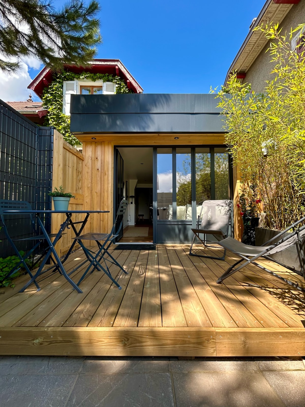 Šarmantno mjesto u čahuri, udaljeno 20 minuta od Ansija, u blizini Vaulksa (Haute-Savoie). Udobno u ovoj površine 32 m2, nezavisno od glavne kuće. Odlično za parove koji traže prirodu i velnes. Velika zelena površina/ bašta nije zanemarena sa vlasnicima.
