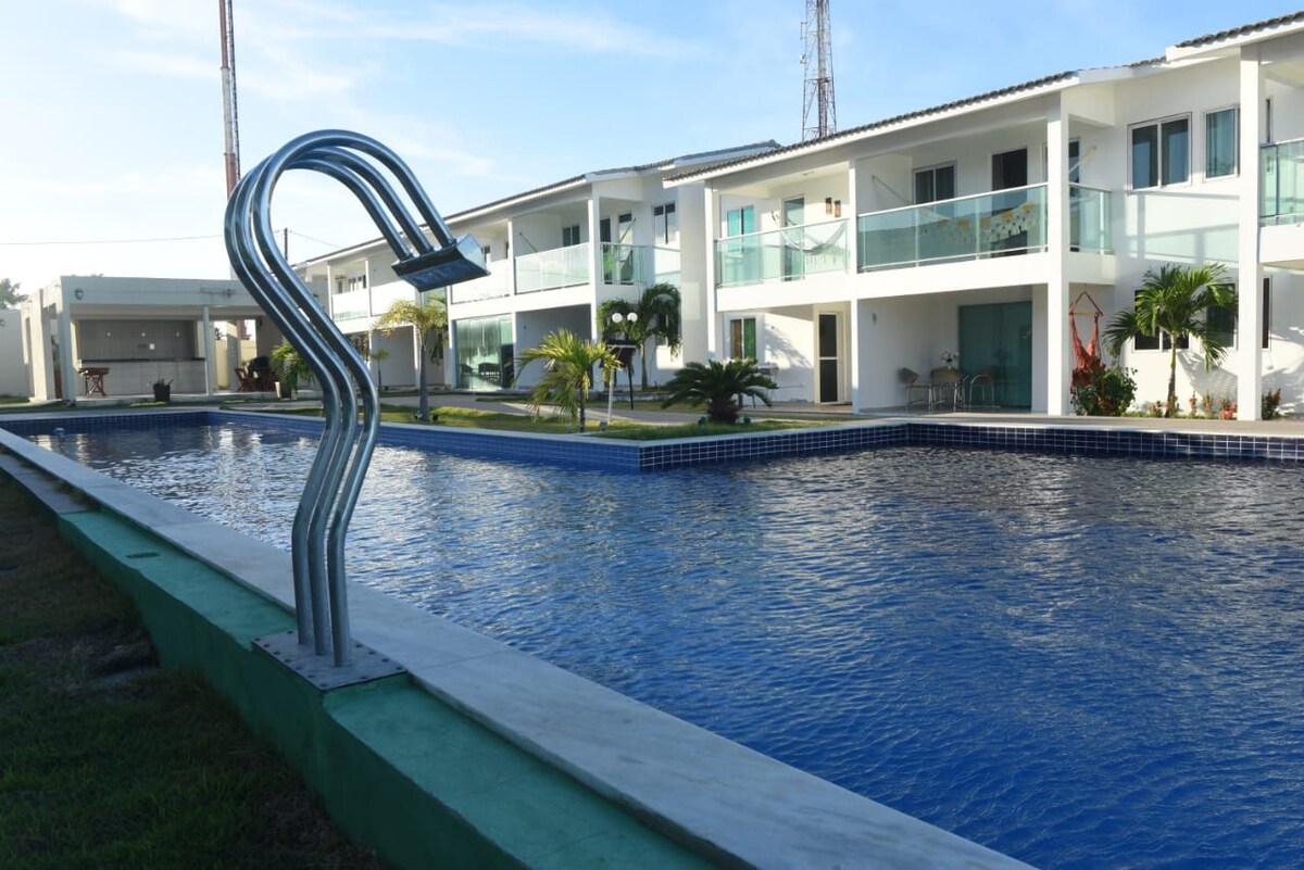 Puna kuća od 75m², idealna za one koji traže udobnost i blizinu najboljih plaža. - 2 spavaće sobe sa klima-uređajem (bračni krevet + pomoćni kreveti) - Bazen sa roštiljem - Planirani nameštaj - Puna kuhinja - 3 kupatila + električni tuš - Smart TV 70 inča + veliki i udoban kauč Ima parking mjesto i spoljašnje okruženje za odmor nakon istraživanja regiona. Pored plaža Tabatinga, Coqueirinho, Tambaba i Praia Bela