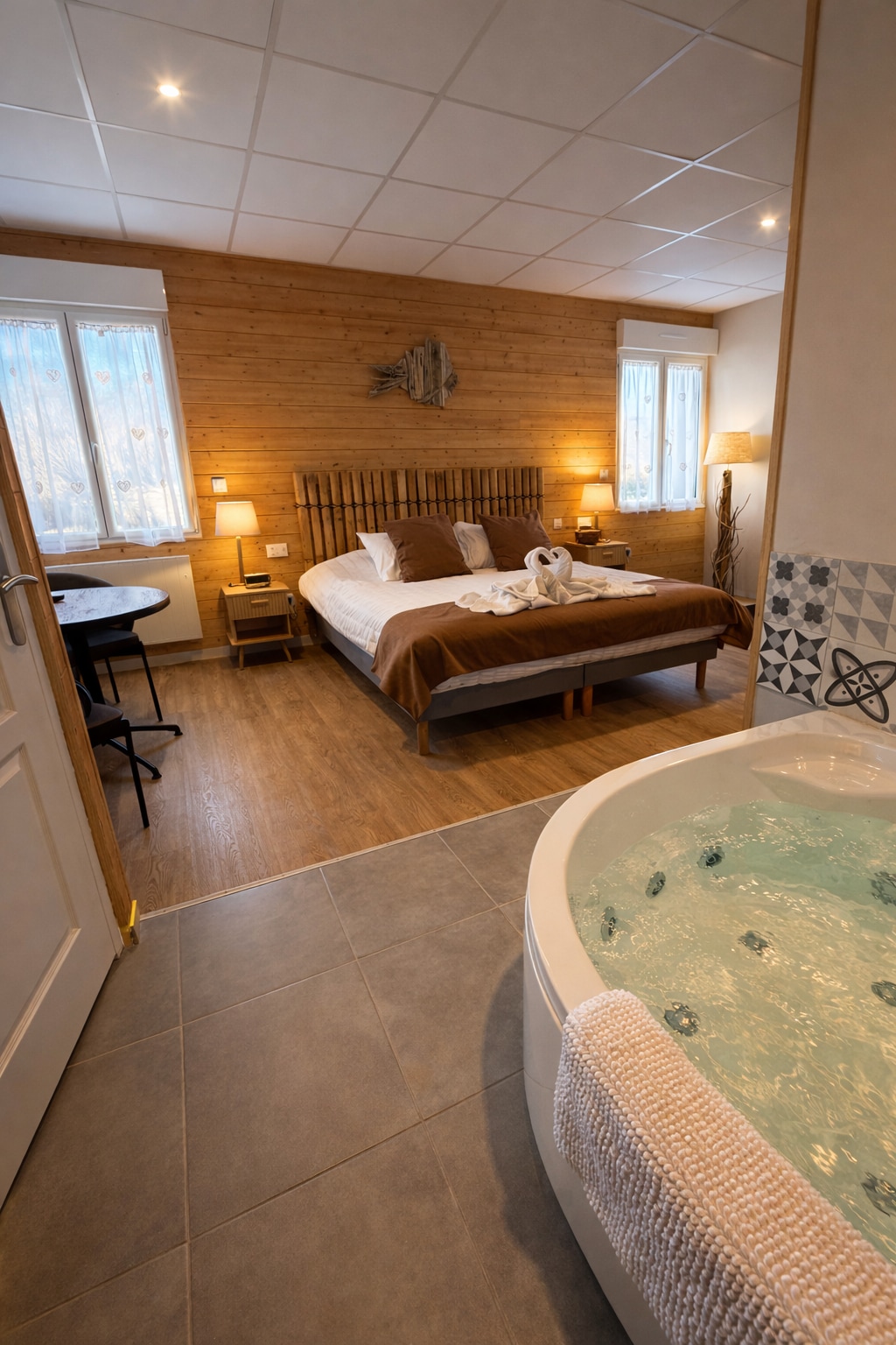 Soba pored bazena sa spa barom i opuštenim ambijentom
