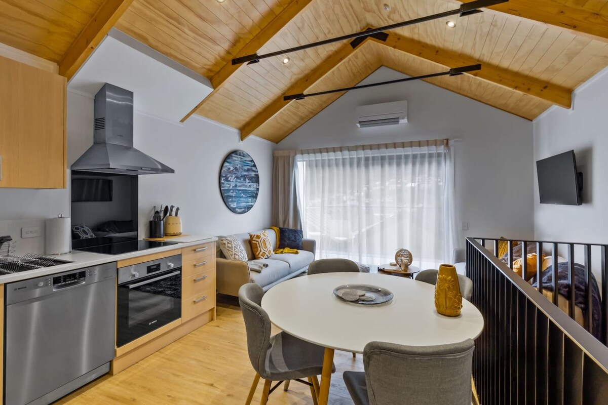 Samo nekoliko minuta hoda od živopisnog centra grada, ovaj stan je savršeno mesto za boravak u Kvinstaunu. Stan od 42 kvadratna metra nudi: - Potpuno opremljena kuhinja - U objektima za pranje veša u jedinici – Atmosfera planinske kuće sa visokim plafonima - Bezbjedno parkiranje izvan ulice - Pristup teretani u sklopu kompleksa - Besplatan Wi-Fi i Netflix - Supermarket je udaljen samo minut - Prelep pogled na vrh Sesil i žičaru Skyline Uživajte u Kvinstaunu i njegovoj okolini iz ovog sjajnog doma daleko od doma.