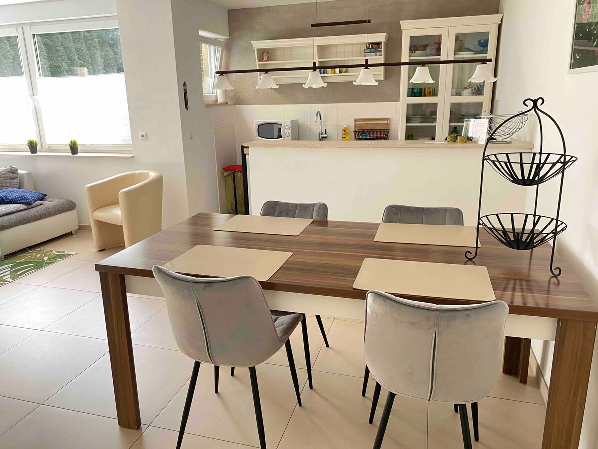 Das Ferienappartement befindet sich in einem 2017 neu erbauten Haus mit separatem Zugang ins 1. OG. Es ist ein kontaktloser Aufenthalt mit check in über Schlüsselbox möglich. Gern begrüßen wir unsere Gäste aber selbst. Die Unterkunft ist nur für 2 Personen und für Kinder nicht geeignet. Abweichungen von der eingestellten Mindestaufenthaltsdauer können über eine Anfrage vereinbart werden. Die Unterkunft ist nicht barrierefrei.
