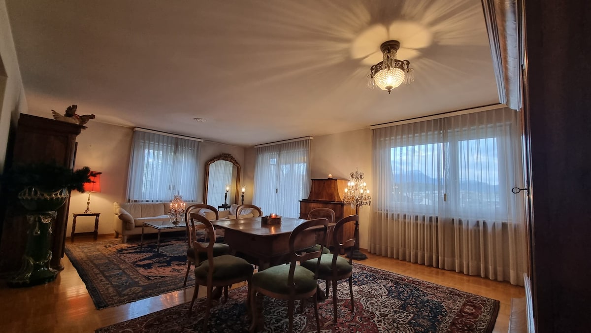 Novi i veoma dobro održavan trosoban stan sa privatnim ulazom i privatnim parkingom nalazi se na mirnoj lokaciji na gradskoj granici sa gradom Luzernom. Autobuska stanica je vrlo blizu. Stan ima udobnu, napola natkrivenu terasu sa pogledom na prirodu. Savršena je za parove, porodice i turiste da istraže grad Luzern i njegovu okolinu. Za decu obezbeđujemo dečije sedište i putni krevetac na zahtev.