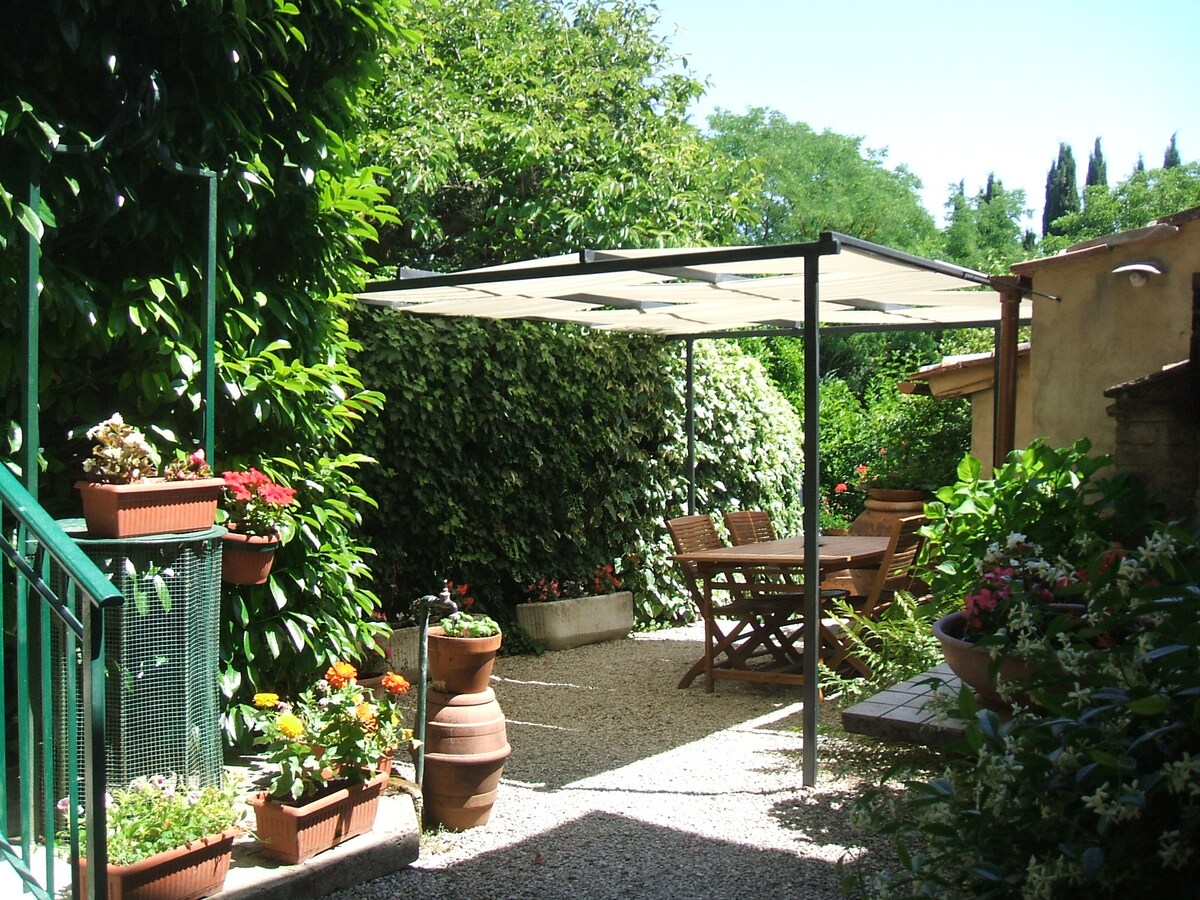 PLEASE NOTE THAT BEING IN THE COUNTRYSIDE WITH FEW PUBLIC TRANSPORTATION OTHER THAN TAXI, THE BEST WAY TO ENJOY YOUR STAY AND TO VISIT THE BEAUTIFUL SURROUNDINGS IS TO HAVE A CAR. The 18th century Villa di Geggiano, surrounded by vineyards and lovingly cared gardens, is located in the Chianti area near Siena, one of the most beautiful regions of Italy which will provide an idyllic and enchanting backdrop to your vacation. Our guesthouse is located in one of the garden pavilions of the villa.