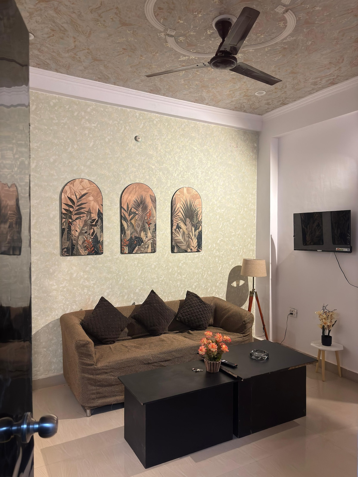 Dobro došli u ovaj elegantni 1BHK stan, savršen za parove ili putnike koji putuju sami. Prostor se sastoji od udobnog dnevnog boravka sa elegantnim dekorom, mramornim plafonom, ambijentalnom rasvjetom i pametnim televizorom. Uživajte u potpuno opremljenoj kuhinji, čistom kupatilu i mirnoj spavaćoj sobi. Smješteni u mirnoj zgradi sa 6 stanova, gosti imaju non-stop podršku staratelja na licu mjesta. Idealno za udoban boravak sa svim osnovnim potrepštinama za rad ili slobodno vrijeme.