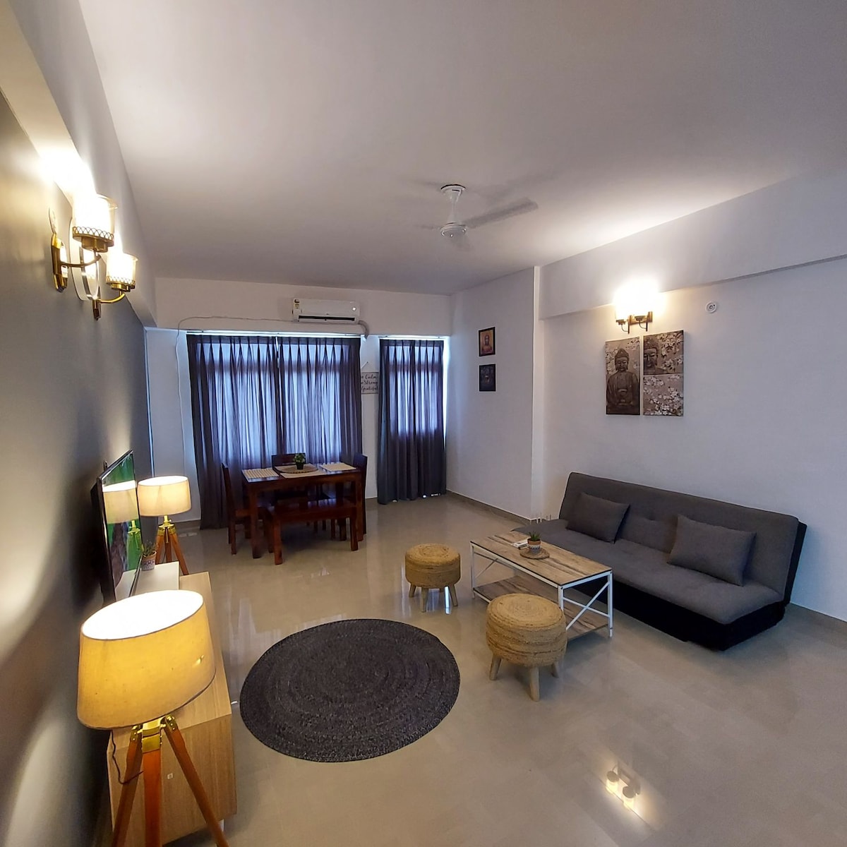 Pobjegnite u naš topli i privlačni 1BHK stan, savršeno prilagođen porodicama, parovima ili putnicima koji putuju sami. Smješten u vrhunskom području, naš udoban dom nudi savršen spoj udobnosti i praktičnosti. Sadržaji: - 1 prostrana spavaća soba sa klima-uređajem i bračnim krevetom - 2 kauča na razvlačenje u dnevnoj sobi - Potpuno funkcionalna kuhinja s osnovnim sadržajima, savršena za pripremu obroka - Priključen toalet radi dodatne praktičnosti - Trpezarijski sto za obroke